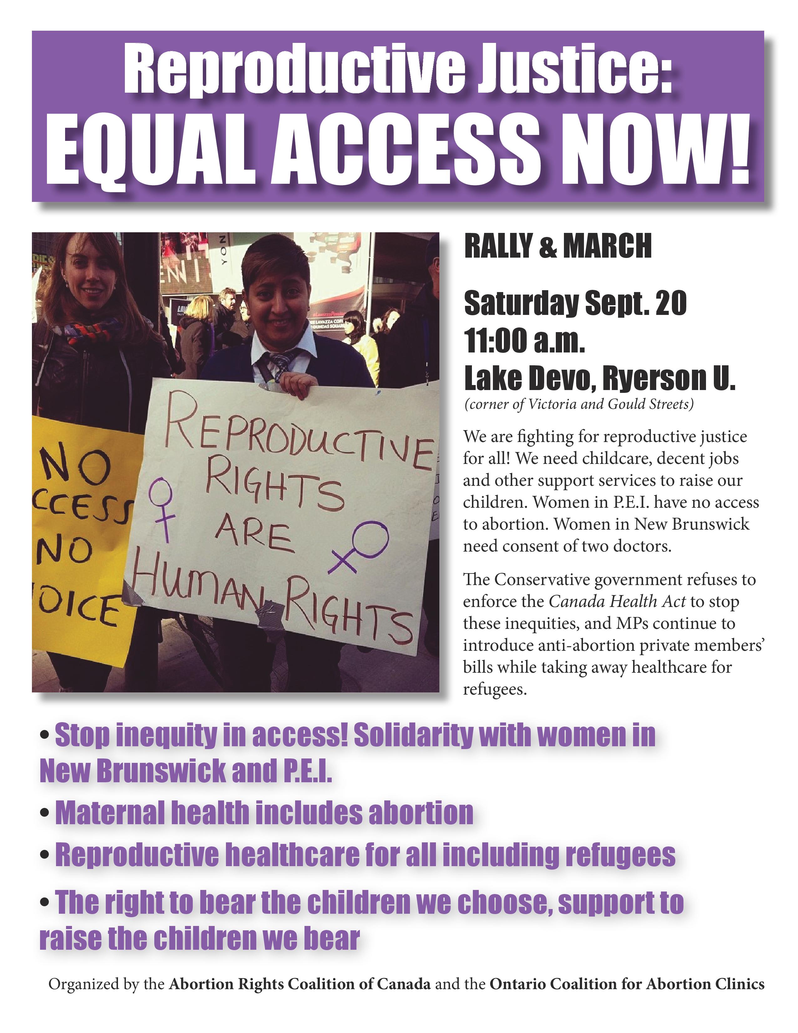 Organized by the Ontario Coalition for Abortion and the Abortion Rights Coalition of Canada